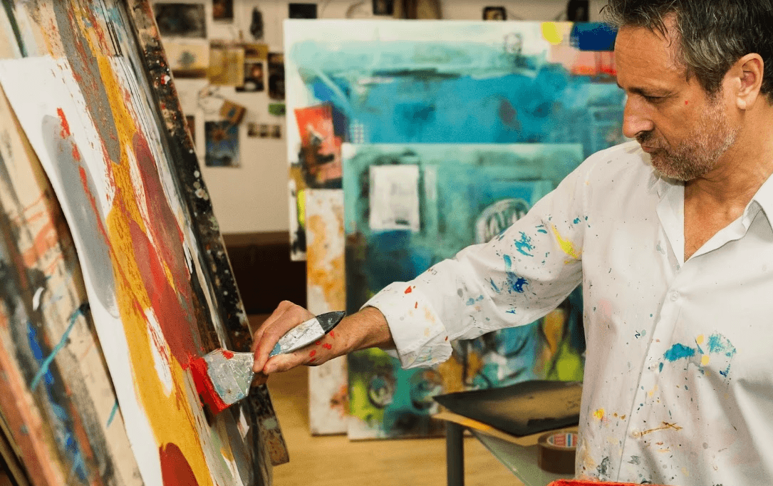 Los colores se mezclan como emociones que no encuentran palabras: verdes que respiran, naranjas que arden, azules que lo envuelven todo. Panizza captura ese instante previo a hablar, donde la mente se convierte en un espacio cerrado, y la conversación más intensa ocurre en silencio.